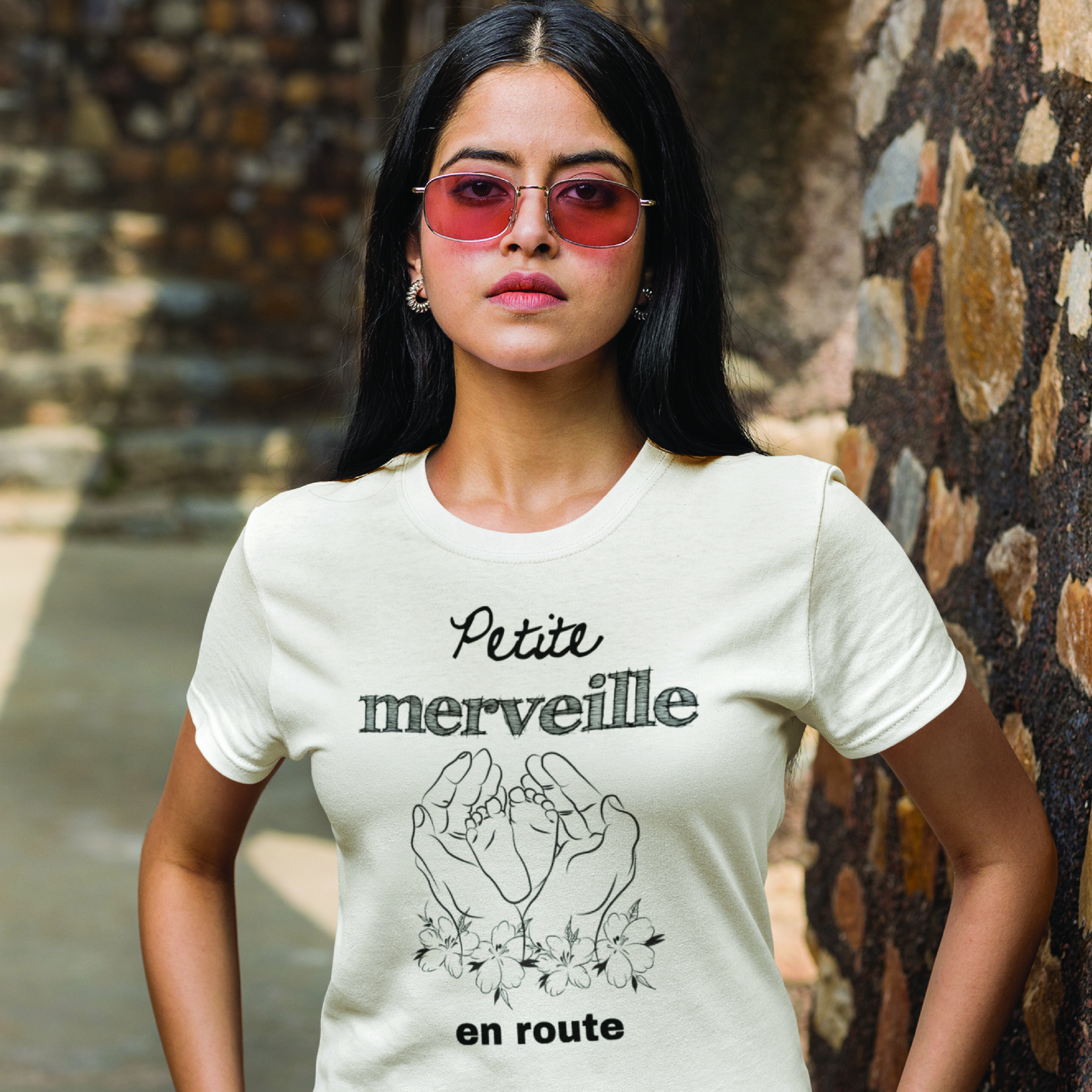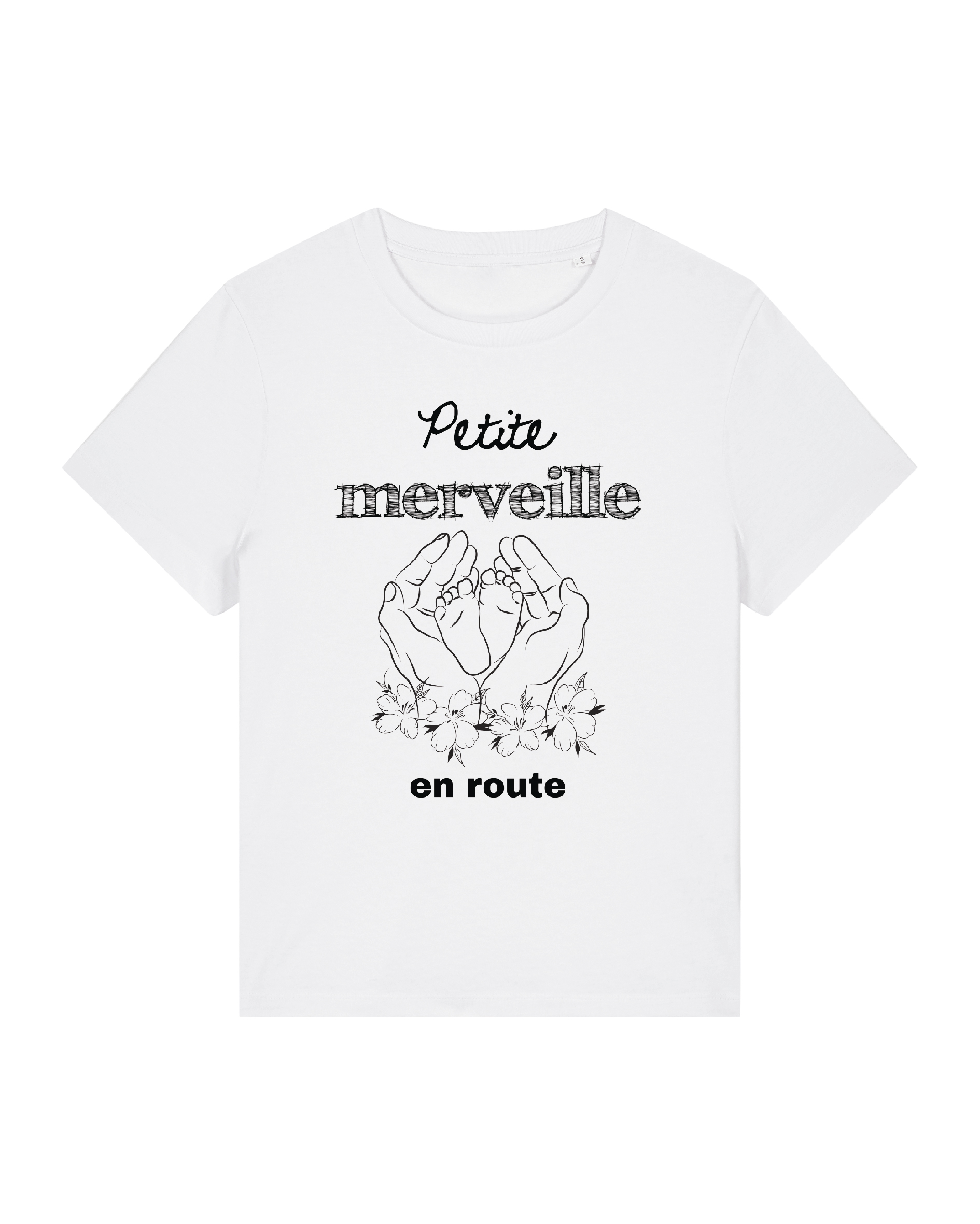Découvrez notre t-shirt de grossesse « Petite Merveille en Route », un design tendre et original pour annoncer votre heureuse nouvelle à votre famille et vos proches. Ce t-shirt unique met en scène une illustration adorable : entre vos mains, vous tenez délicatement les petits pieds de votre bébé à venir. Un message plein d’émotion et de douceur pour partager votre joie avec élégance.